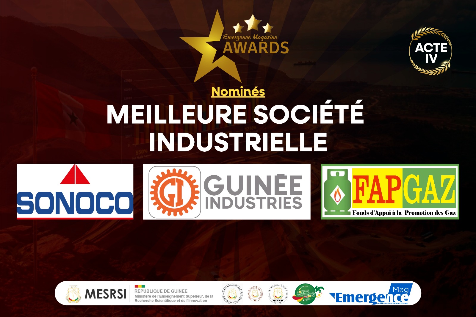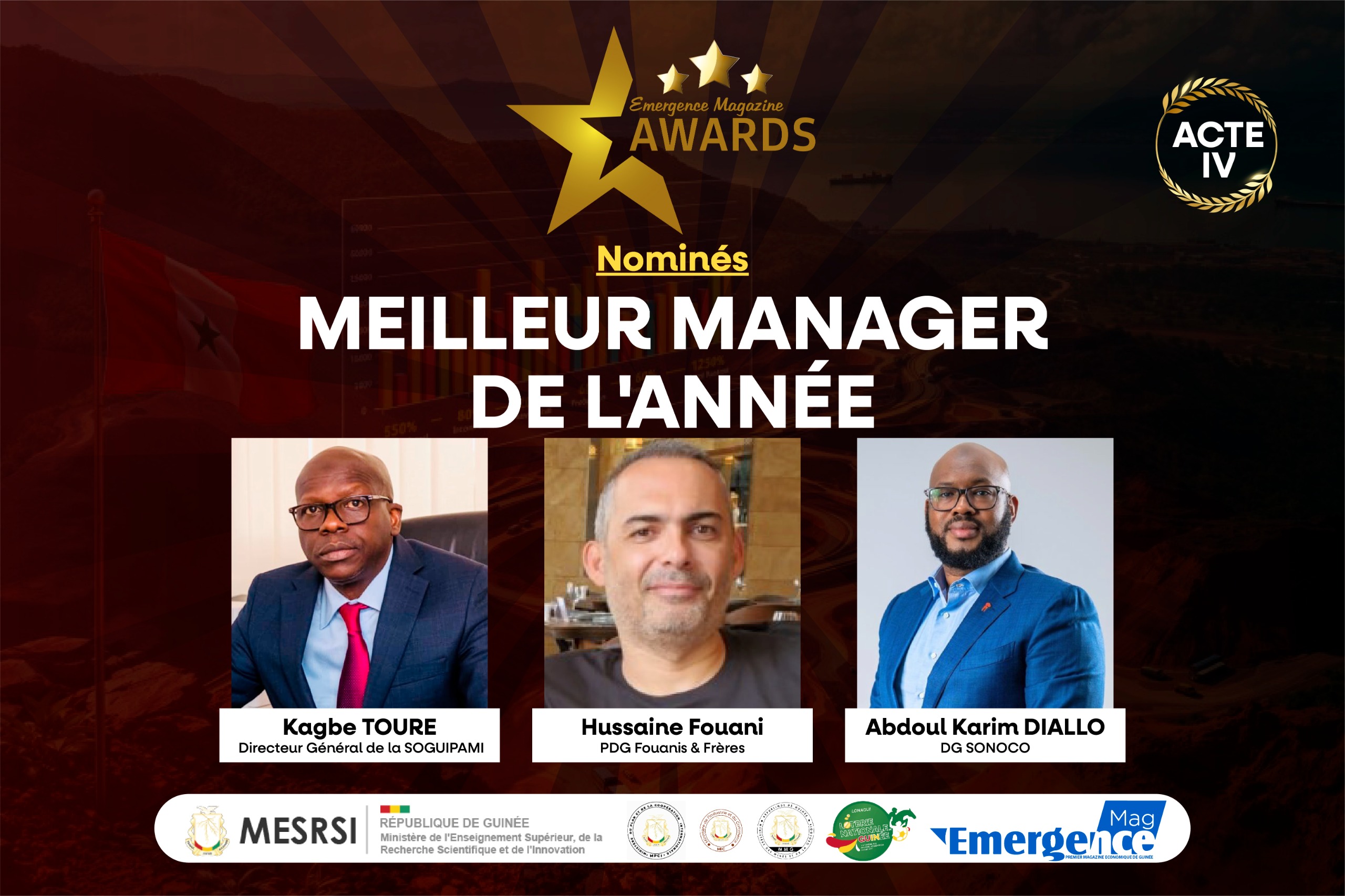 Conakry, 13 avril 2026 : Le magazine Émergence a dévoilé ce jour les nominés dans quatre catégories, en prélude à la prestigieuse cérémonie des Émergence Magazine Awards 2026, qui distinguera 17 acteurs majeurs de l’économie guinéenne et ouest-africaine.