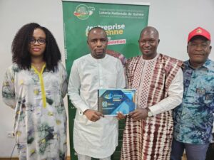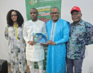 Satisfait, lui aussi, de ce partenariat durable avec Emergence Magazine à travers le FEEM, le Directeur Général de la LONAGUI, entouré de deux de ses collaborateurs, a rassuré les organisateurs du soutien renouvelé de sa société à l’initiative.