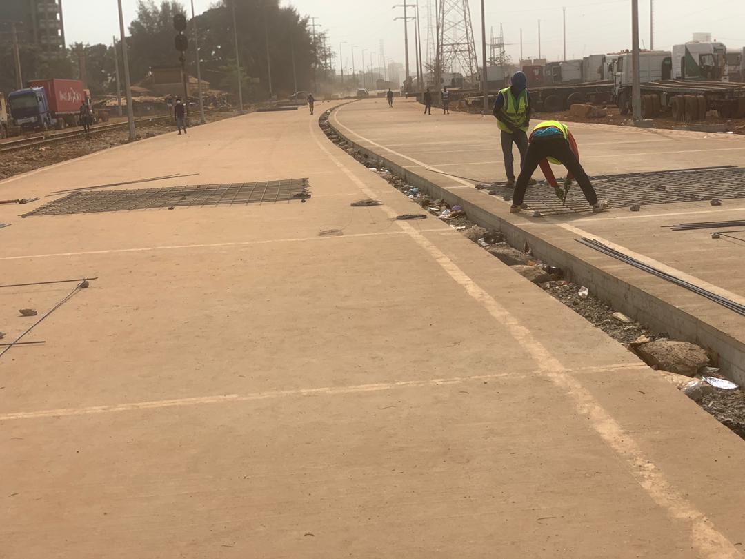 Dans l’enceinte du port, une pénétrante routière uniquement destinée aux gros camions entrant ou quittant le port et qui devra permettre de désengorger l’autoroute sort de terre. Longue de 4km, d’une largeur de 17 m et d’un épaisseur de 25 cm, cette route en construction épate à tous points de vue.