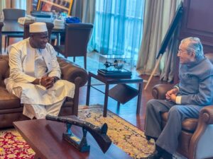 Le ministre Ismaël NABÉ a également eu l’honneur de rendre une visite de courtoisie à Dr. Mahathir Mohamad, ancien Premier ministre malaisien, âgé de 100 ans. Mahathir est une figure emblématique de l’histoire moderne de la Malaisie, ayant marqué de son empreinte la transformation économique et politique du pays. Lors de cet échange, le ministre a bénéficié des conseils avisés de Mahathir sur des sujets clés tels que l’exploitation minière, les infrastructures, l’agriculture et la transformation locale des matières premières. Ces discussions ont permis de renforcer la vision stratégique de la Guinée en matière de développement durable et de modernisation économique. Il a surtout demandé au Ministre de transmettre ses salutations à S.E le Général Mamadi DOUMBOUYA.